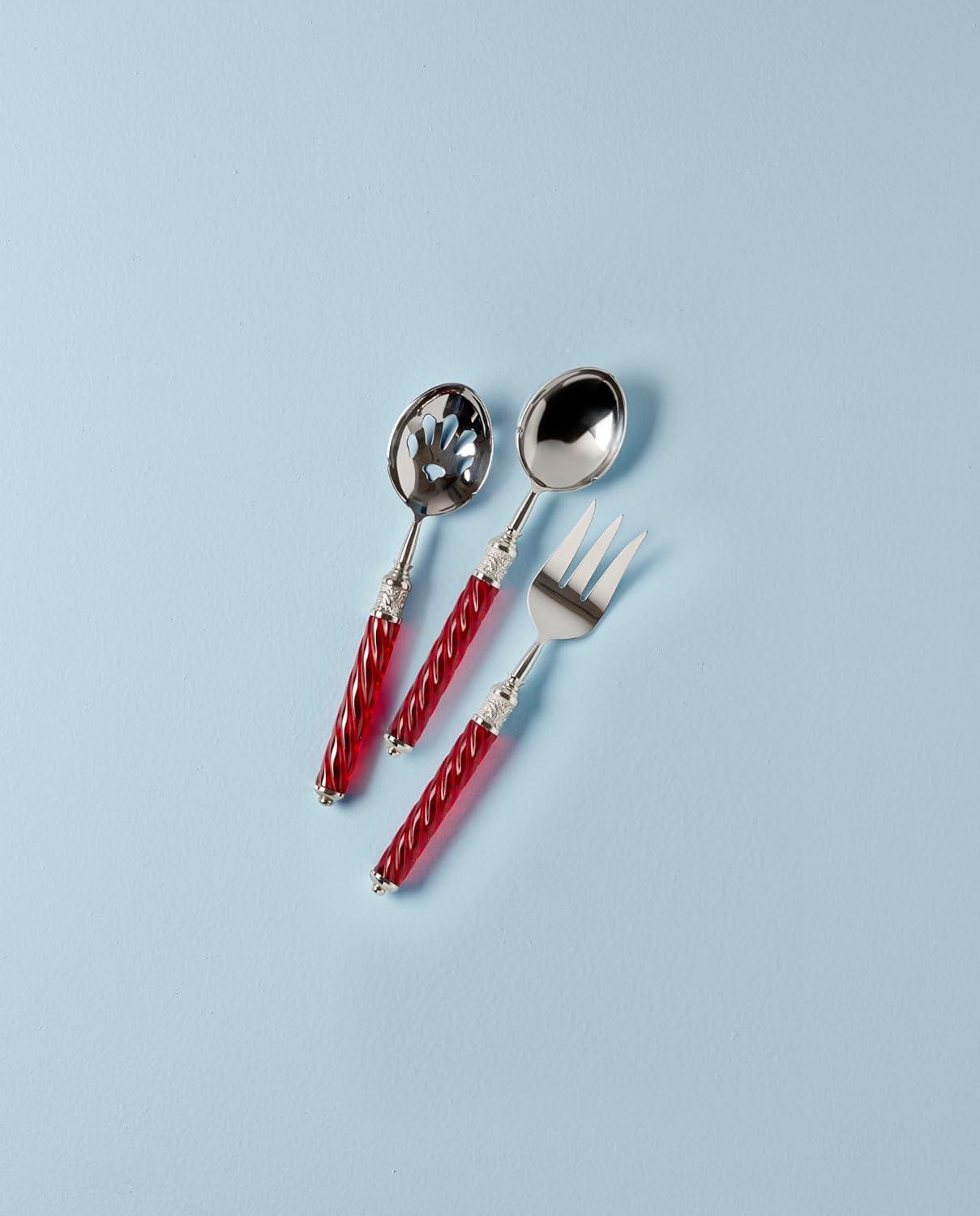 With their red spiral handles and stainless steel heads, the Holiday Jewel Spiral 3-Piece Serving Set was made for festive entertaining. Dishwasher safe and tarnish resistant.