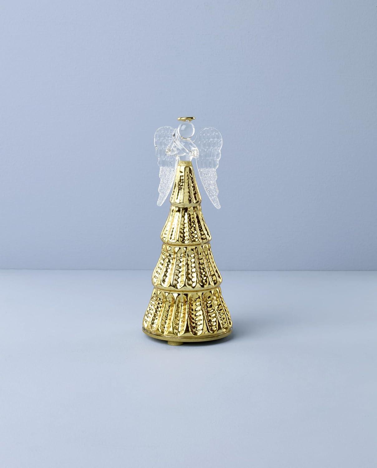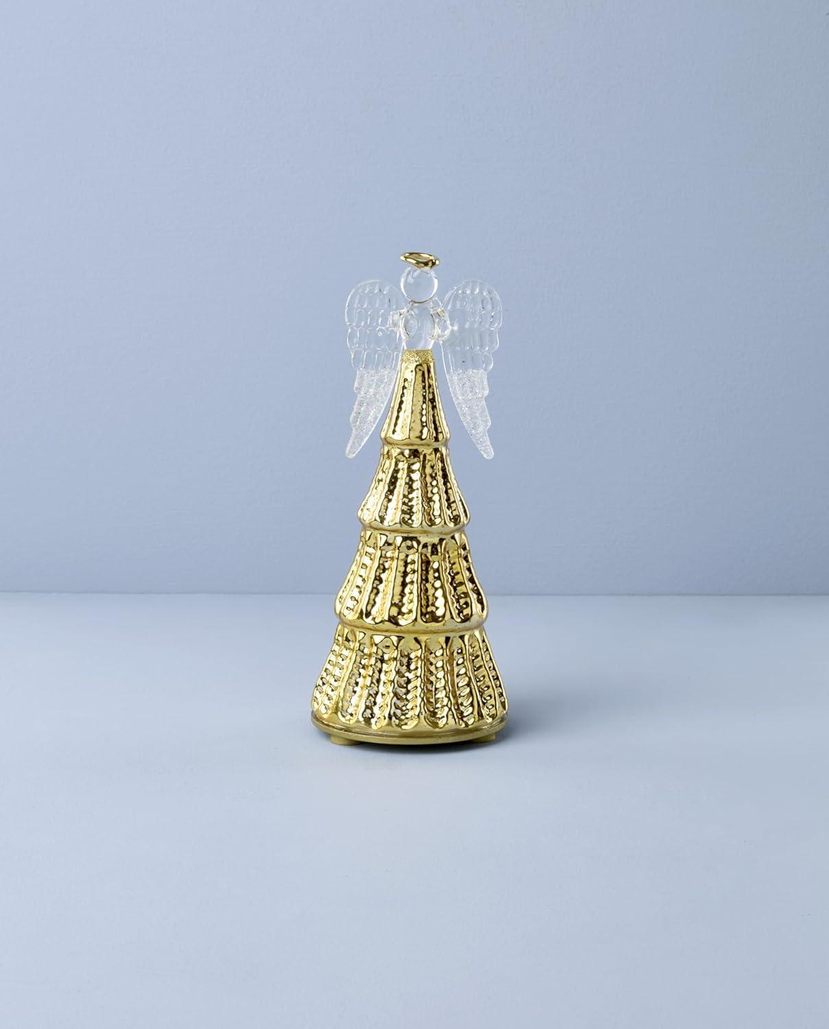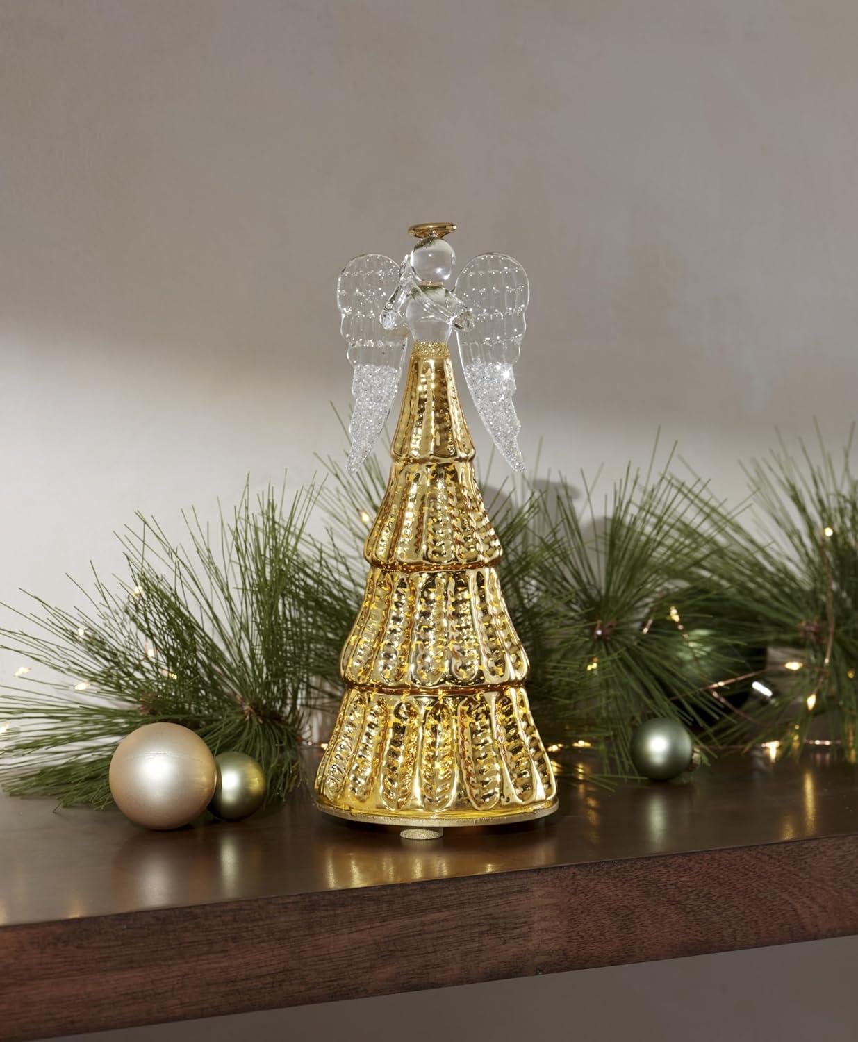 This lit mercury tree figurine adds a soft glow when it lights up, adding whimsy. A golden star gleams from on top of this tree of pine.