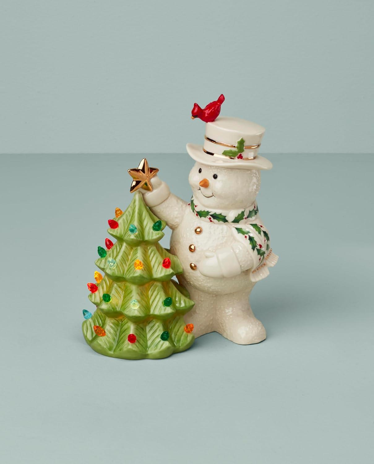 Lenox 894906 Happy Holly Days Snowman Lit Figurine, Christmas & Holiday Decor