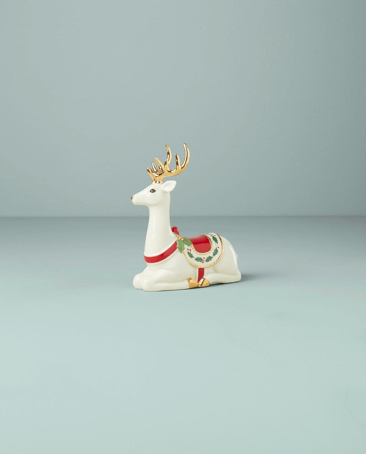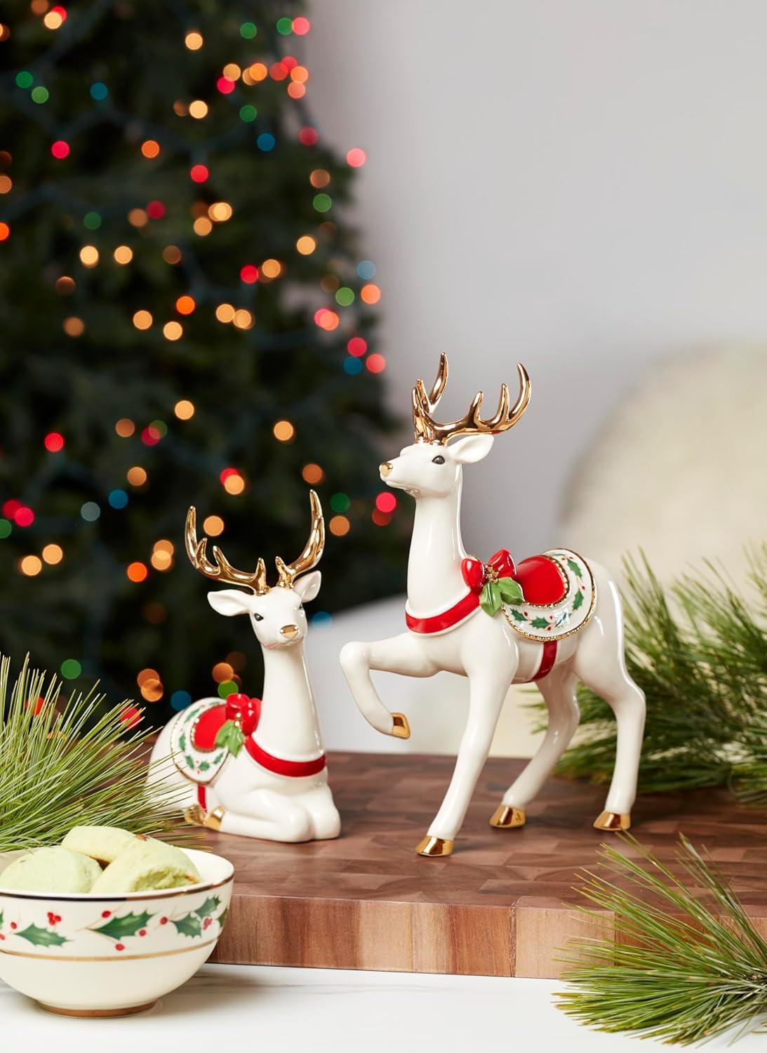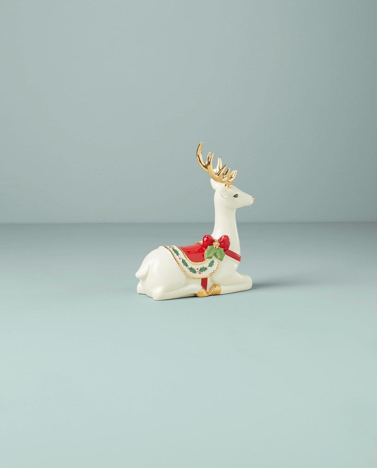 Festively decked in a holly-detailed saddle, this reindeer figurine is sitting pretty for all your seasonal occasions. Put him on a prized spot on your mantle. He makes a very merry statement] Matching standing reindeer sold separately.At Lenox, we strive to make the daily moments in your life a bit more special. Inspired by heritage and designed for now, we bring a rich history of craftsmanship to modern day life. We’ve been a part of homes for over 130 years. Each time you buy Lenox, you are buying a versatile and timeless piece crafted with our century-long commitment to quality, artistry and beauty. Whether you’re gathering the family for dinner, grabbing a midnight snack for yourself in front of the TV or having friends over, Lenox is for real moments that last on products that are meant for living.