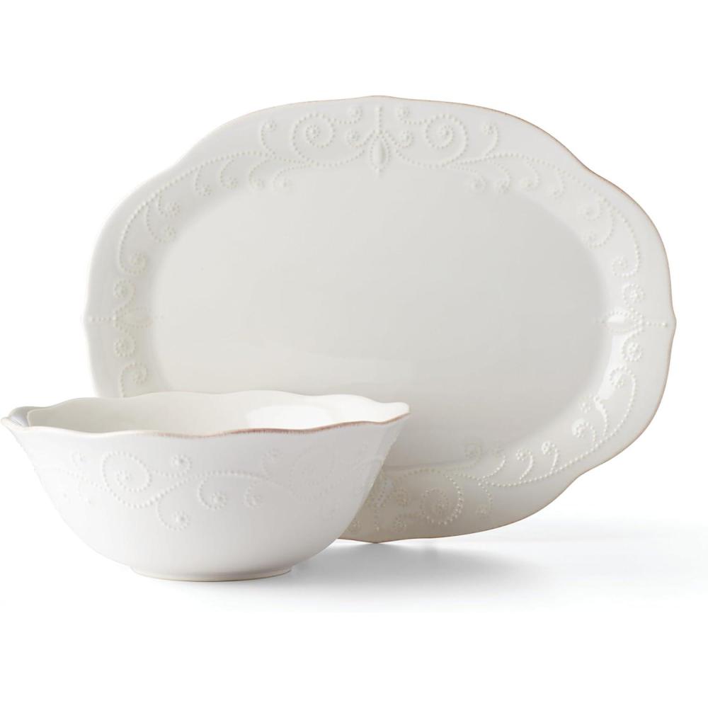 Ready, set, serve] Our beloved French Perle pattern features raised beads and carved textures. Crafted to meet all your serving needs. Includes a serving plate and a serving bowl.At Lenox, we strive to make the daily moments in your life a bit more special. Inspired by heritage and designed for now, we bring a rich history of craftsmanship to modern day life. We’ve been a part of homes for over 130 years. Each time you buy Lenox, you are buying a versatile and timeless piece crafted with our century-long commitment to quality, artistry and beauty. Whether you’re gathering the family for dinner, grabbing a midnight snack for yourself in front of the TV or having friends over, Lenox is for real moments that last on products that are meant for living.