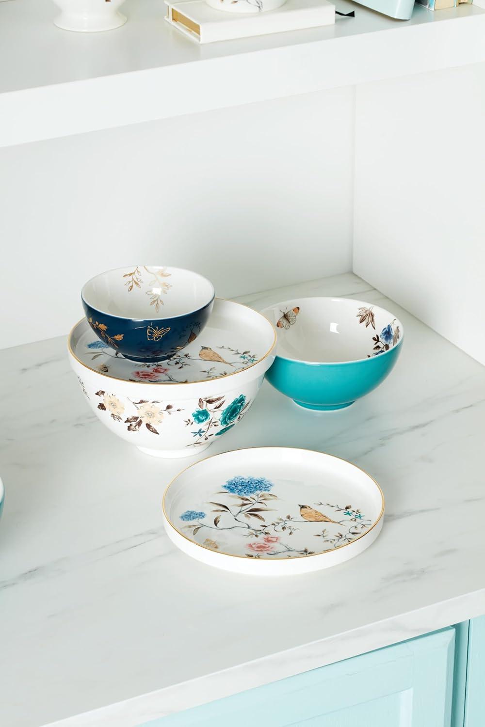 Everyone's favorite nesting dinnerware set is now available in our Sprig & Vine collection. Designed after English gardens and lush scenes of nature with a thin gold metallic accent. Includes six bowls and two plates hidden inside. Assembled it's a conversation starter, but take it apart and it's functional]At Lenox, we strive to make the daily moments in your life a bit more special. Inspired by heritage and designed for now, we bring a rich history of craftsmanship to modern day life. We’ve been a part of homes for over 130 years. Each time you buy Lenox, you are buying a versatile and timeless piece crafted with our century-long commitment to quality, artistry and beauty. Whether you’re gathering the family for dinner, grabbing a midnight snack for yourself in front of the TV or having friends over, Lenox is for real moments that last on products that are meant for living.